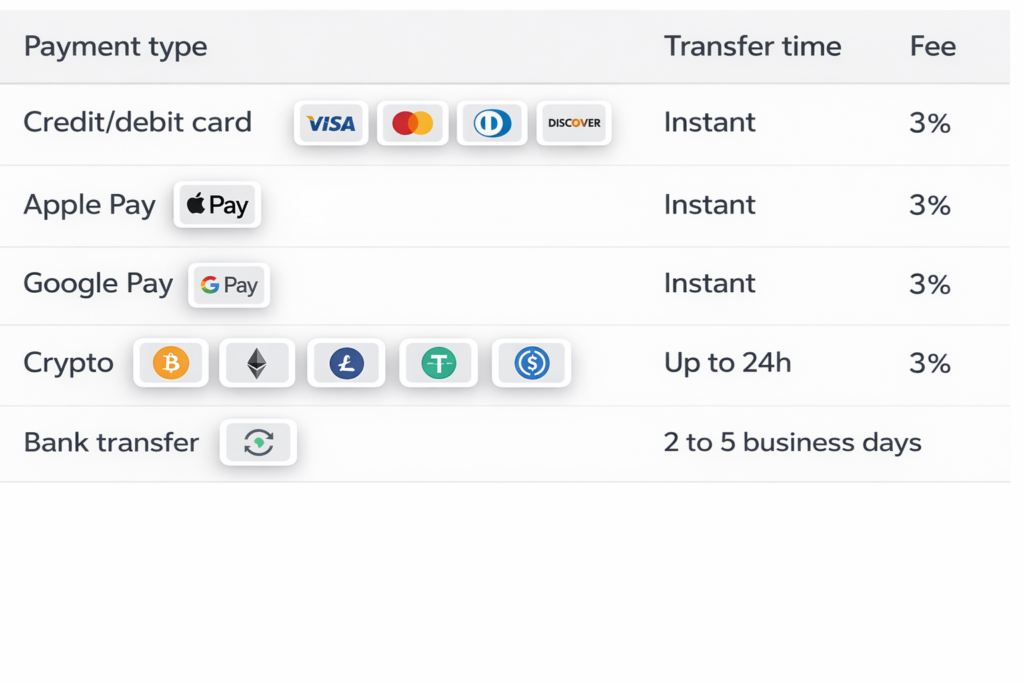 Cyber Funded offers several convenient payment methods for joining a Challenge, including bank wire transfer, debit and credit cards, major cryptocurrencies, Apple pay, Google Pay, PayPal services and many and many other options, in order to give our clients the opportunity to make purchases easily and conveniently.